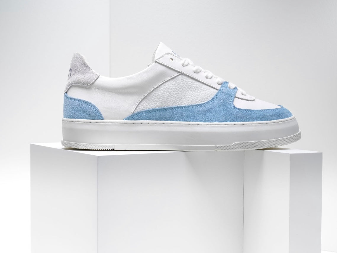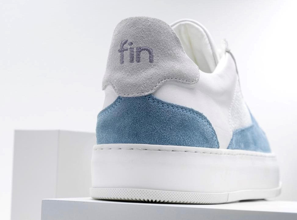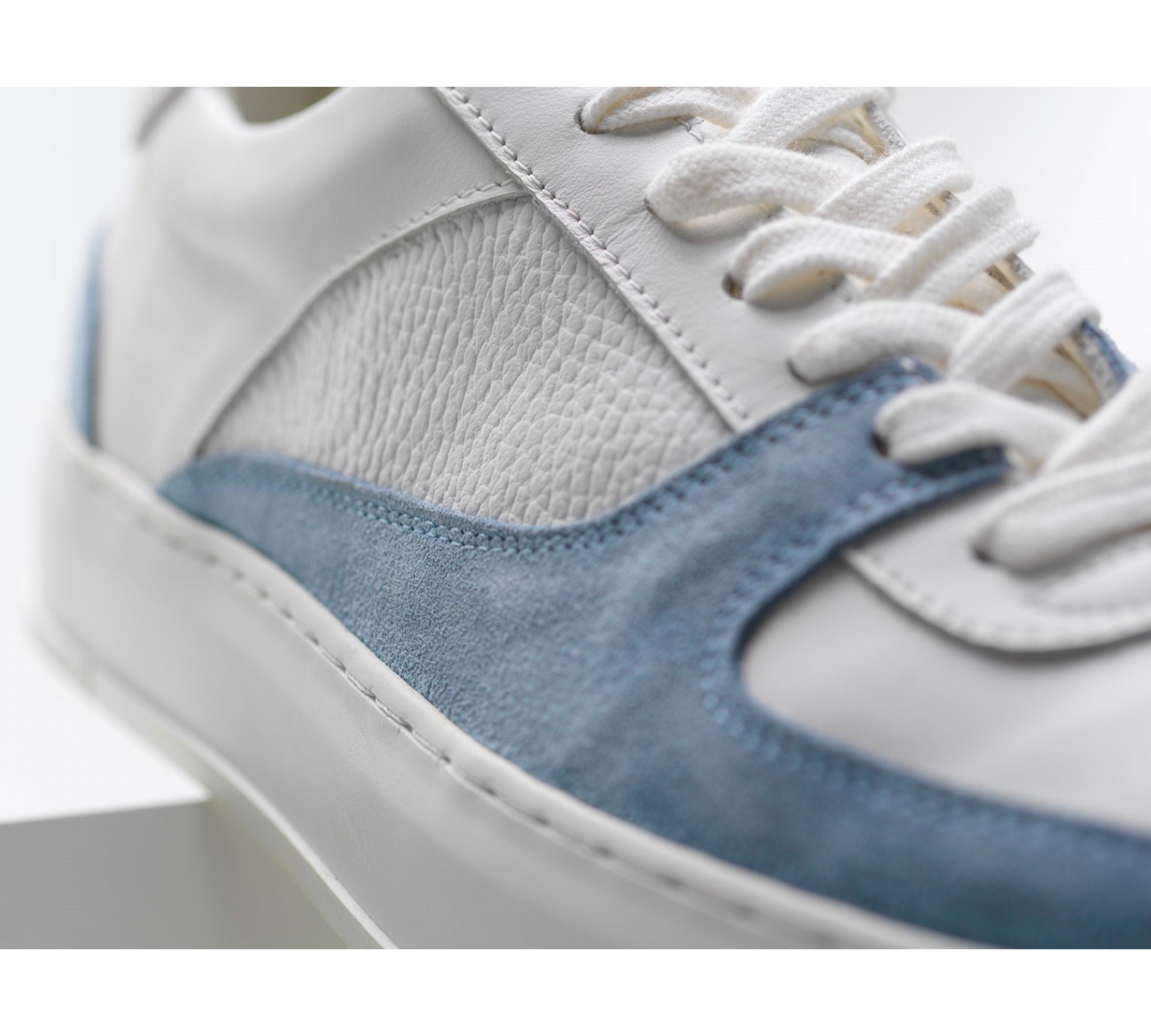 Deep blue suede meets both a tumbled leather panel and a vibrant white body. Probably our most unique trainer in the range so far.